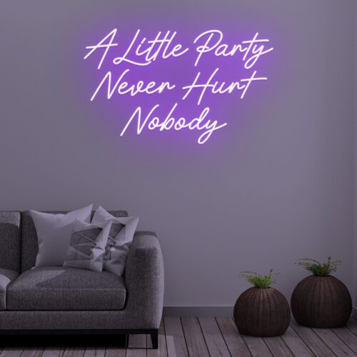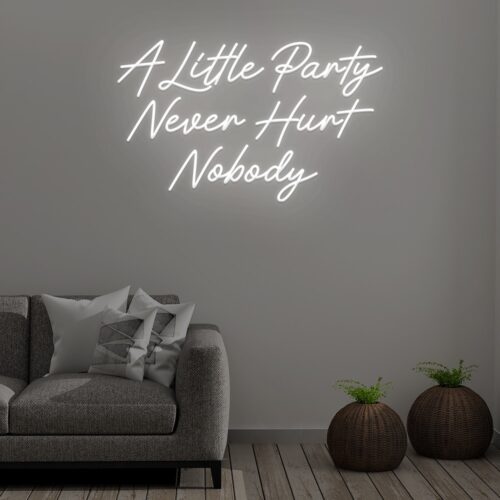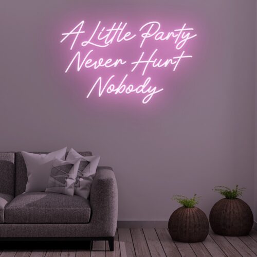 “A little party never hurt nobody,” says this neon sign, which is ideal for a wedding, party, or another event. This Neon Sign will brighten up any wall, playroom, or bar with its vibrant colours and eye-catching design. It also looks great in places like nightclubs, pubs, and event venues, among others.