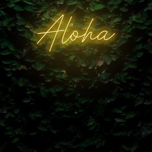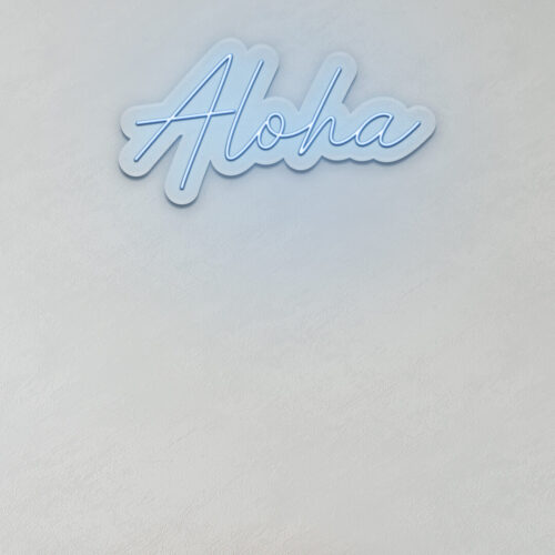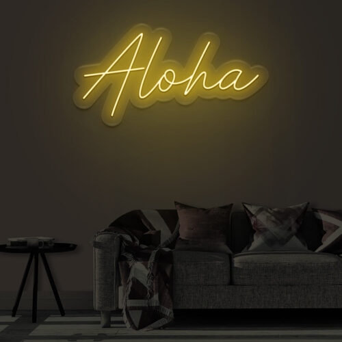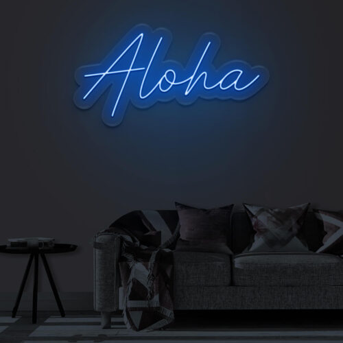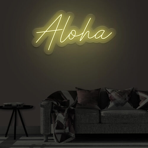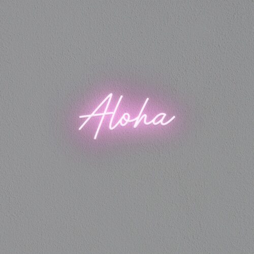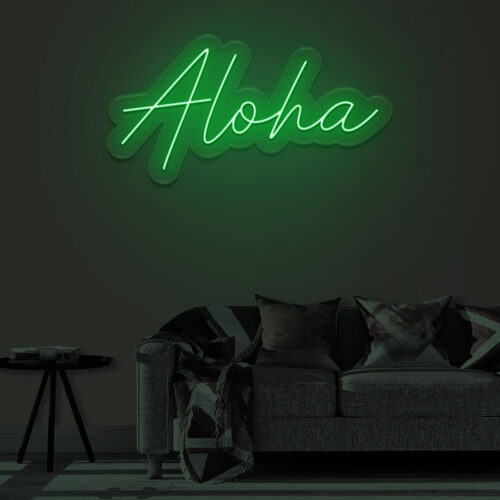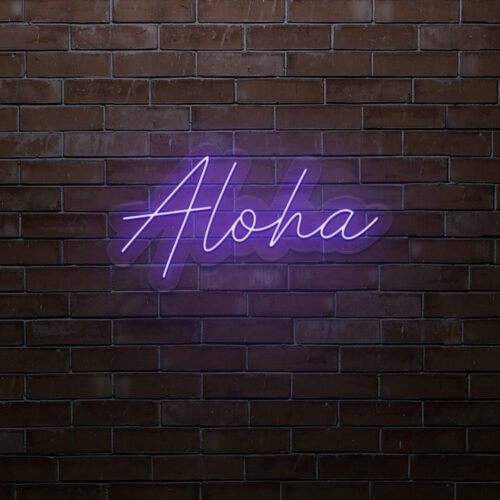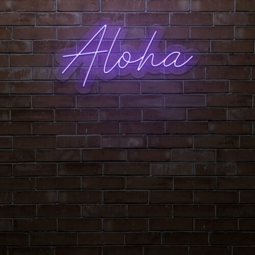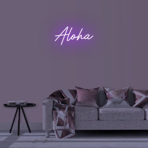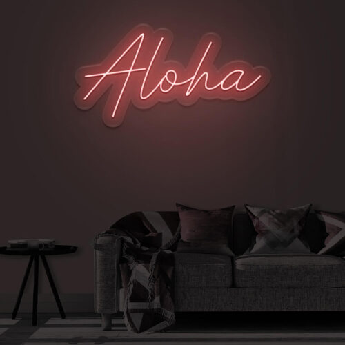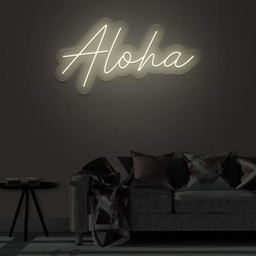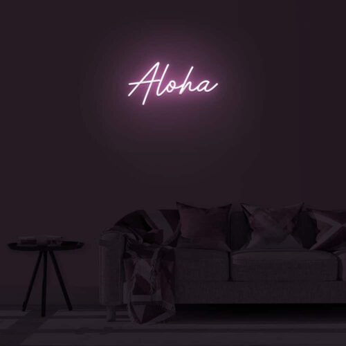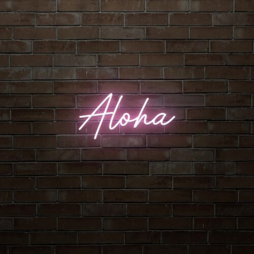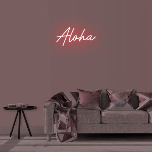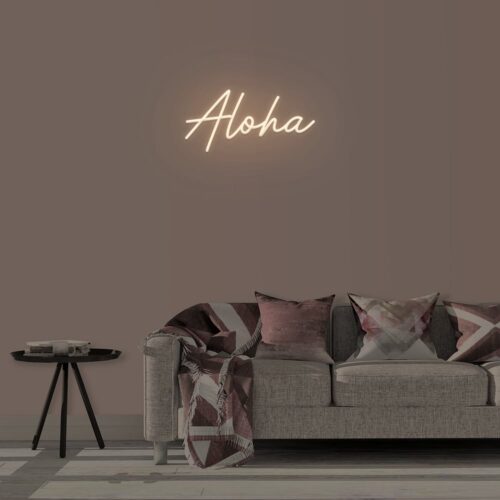 Aloha LED neon sign that is suitable for use in a variety of settings including home and bathroom decor, as well as beauty salons, fashion boutiques, and cafés. Aloha is a two-line poster that can be displayed on a feature wall and looks fantastic in any setting.