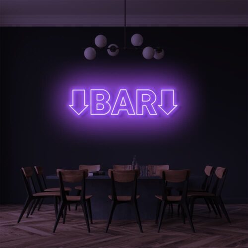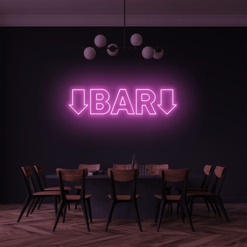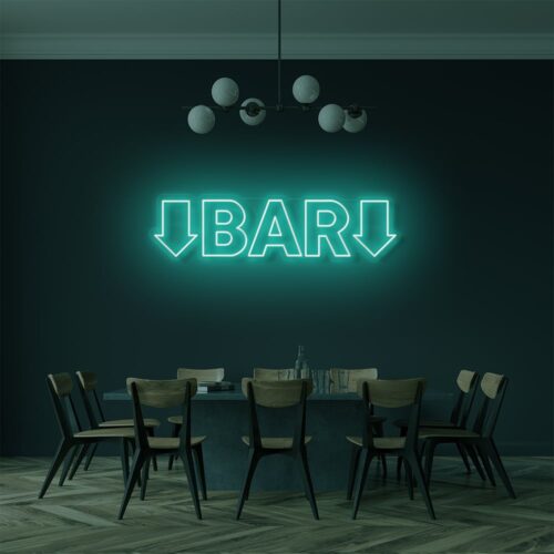 Look at this spectacular neon sign that says exactly what you are looking for. Along with the calligraphed letters’ BAR’, the sign has additional arrows on both ends, pointing downwards to guide you in the right direction. It is a funky yet elegant piece of writing which comes with an exceptional range of colours to fit the ambiance of any space you place it for.