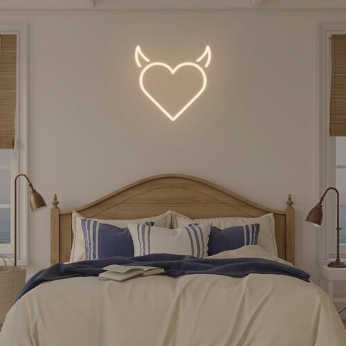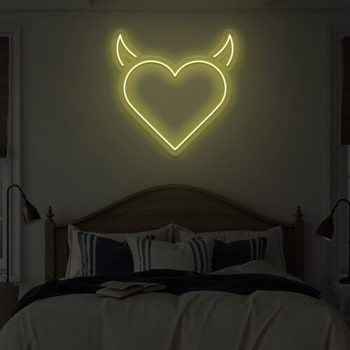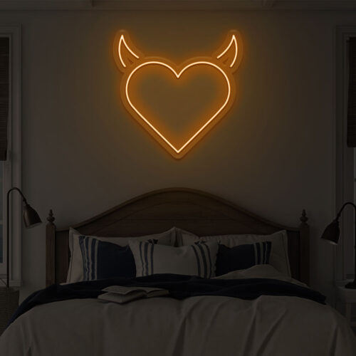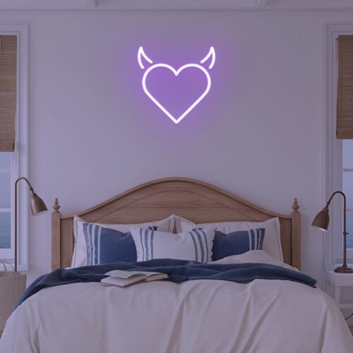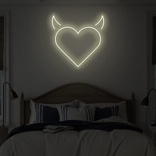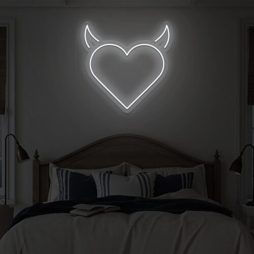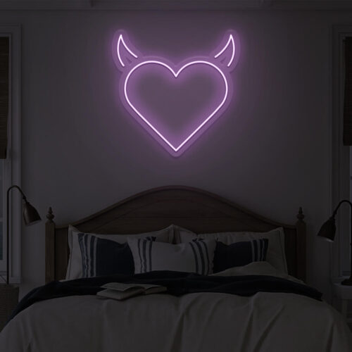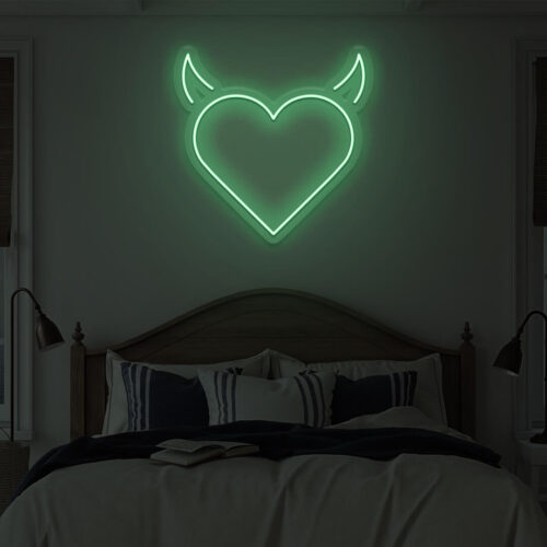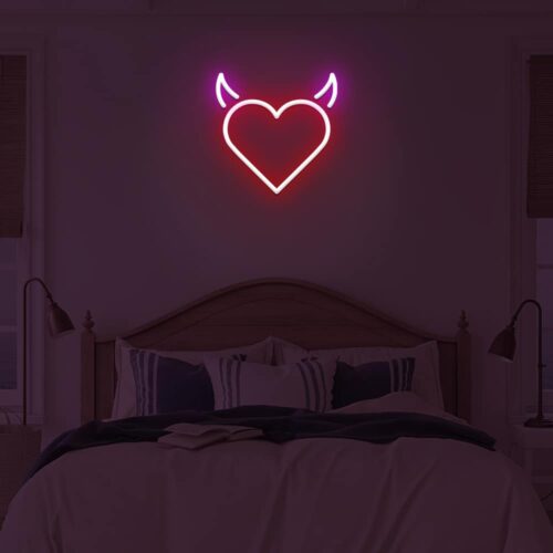 Devil heart LED neon signs are designed for use in beauty salons, fashion stores, and cafés, as well as for use in the home. Devil heart brightens every area in your home with this gorgeous LED neon wall art. It’s the ideal background for all of your pictures!