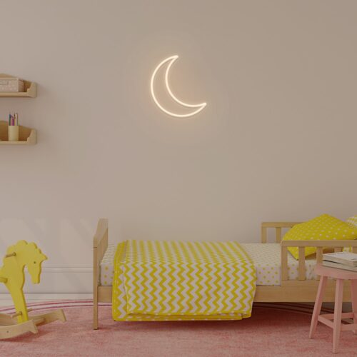 This stunning neon moon sign is sure to put a smile on your face! Moon LED neon sign is lightweight and portable and the product has a long life expectancy, and comes ready to hang. You can simply hang this gem over your bed and turn it on to recreate the enchanted look of the night sky.