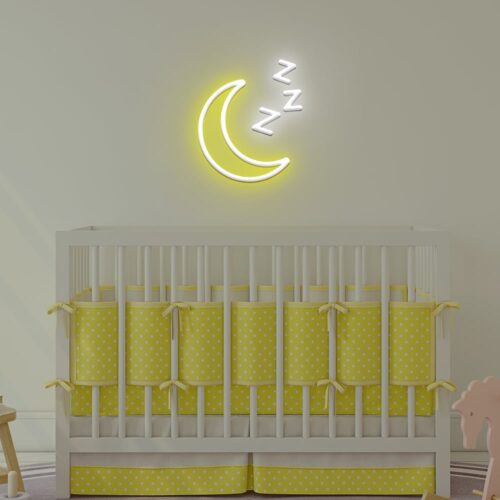 This gorgeous moon zzz LED neon sign is sure to make you happy! This moon zzz neon sign perfectly suits your bedroom by just hanging over your bed and turning it on. The product has a high life expectancy and is delivered ready to hang. LED neon sign with a moon zzz design that is lightweight and portable.