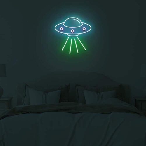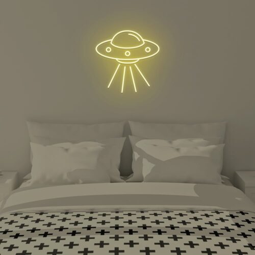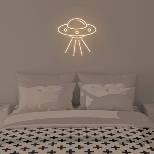 This Ufo led neon sign would be great for the kids area or play area. Plugging in this neon sign is a simple way to obtain the required bright and colourful appearance. A dimmer switch gives you complete control over the brightness of the lamp, allowing you to customise the light to suit your needs.
